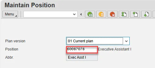 Step 2. Input the position number that needs updating. This document will use 60087078 from the OSC training environment.