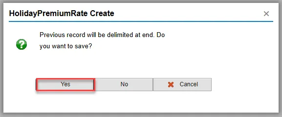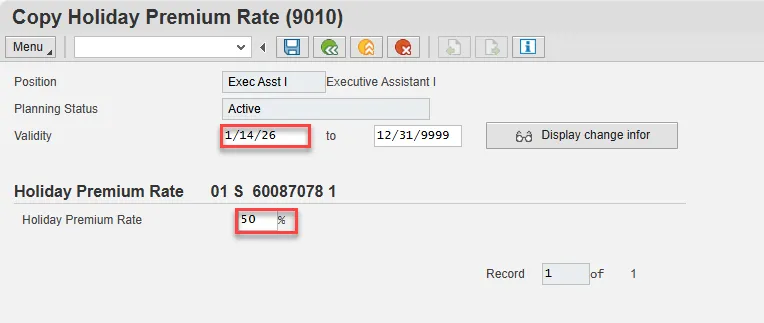 Step 6. Enter the start date of the new record and update the Holiday Premium Rate as applicable.
