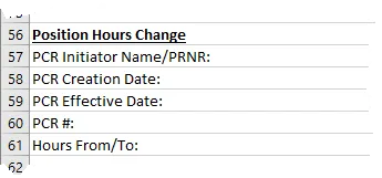 Step 8. The Position Hours Change action also allows for a change in the time settings for the position, though it is not required to do so. If new values are not entered, the current values will remain in place. There are ten fields which may be changed, and the scroll bar must be used to access them all.