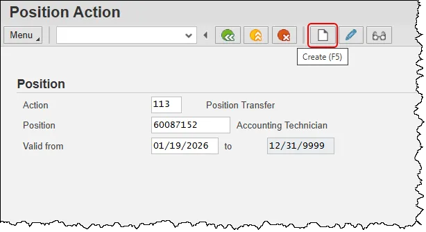 Note: Once you click create, the position number and effective date are locked in. If a mistake is discovered with one of these data points, the action must be deleted and a new one created with the correct information.