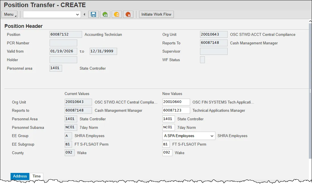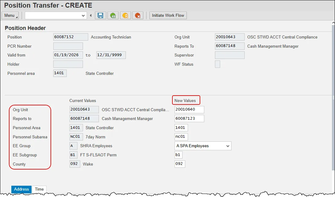 • Position – ID number of position being transferred. (This document will use 60087152.)