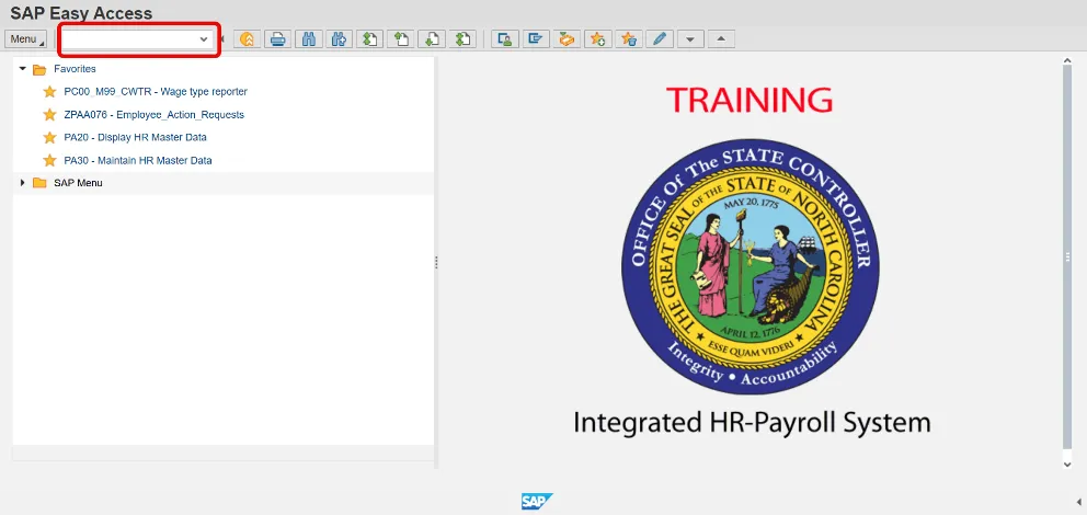 Command White alphanumeric box in upper left corner used to input transaction codes R
