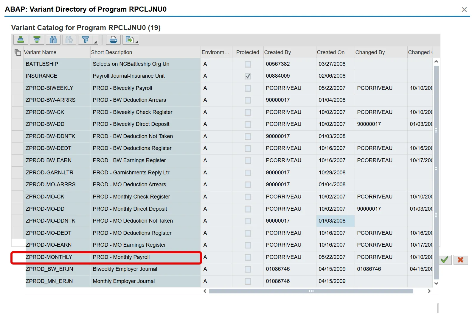 • ZPROD-MONTHLY is used to view monthly payroll.