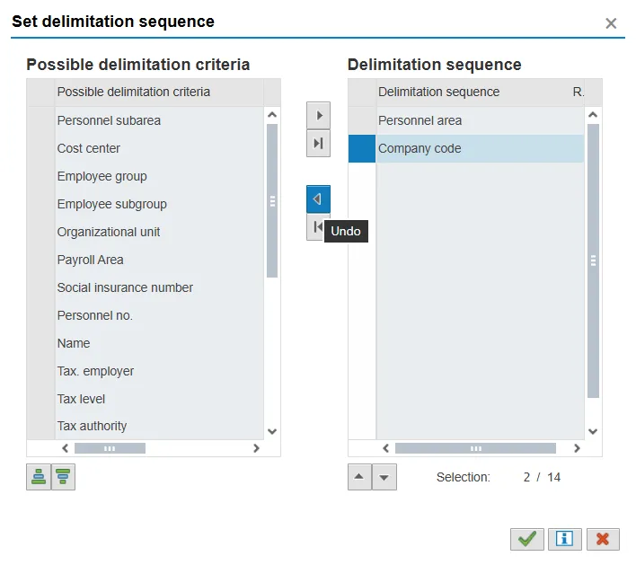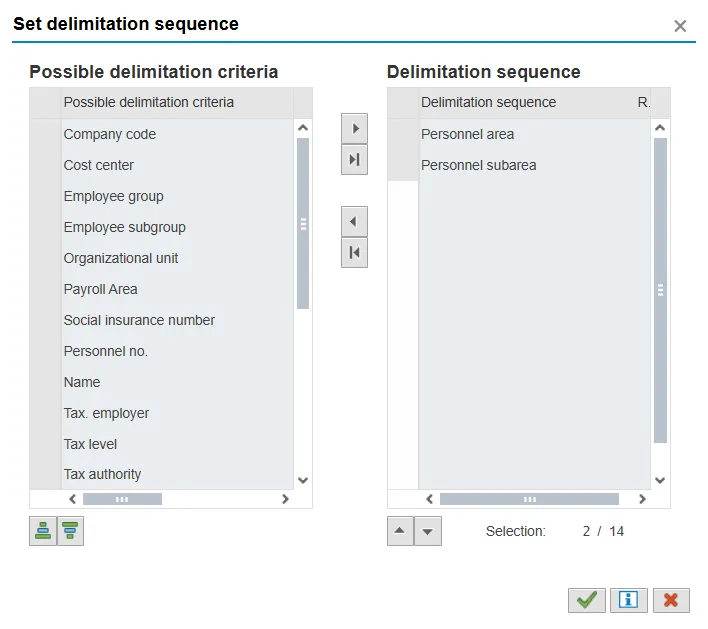 Step 13.    Click the Delimitation button. Use the Delimitation sequence to group and total employees selected.