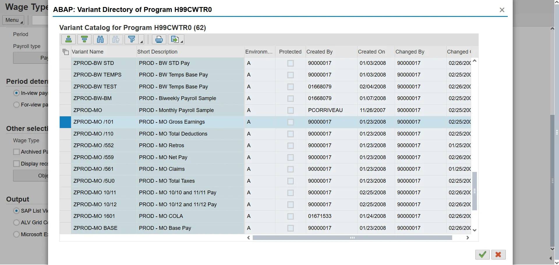 Note: This report contains the data related to Personnel Number 80001039.  The variant allows you to view the total gross wages (WT /101) for the other period of 01/2017.