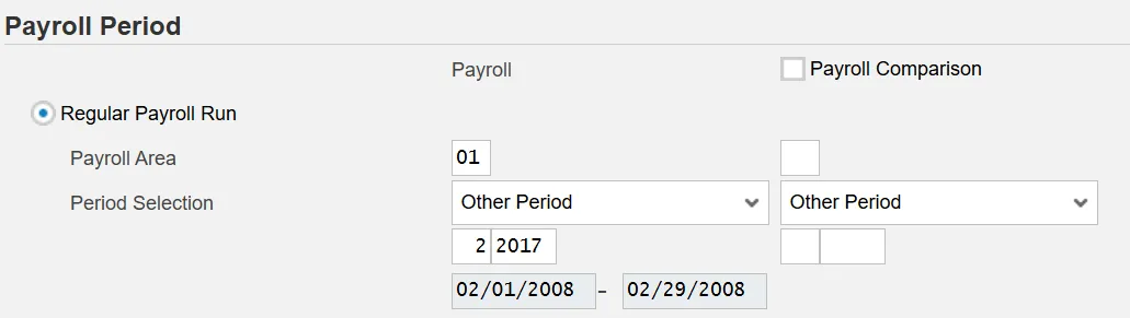 The purpose of this transaction is to evaluate the wage types for a specific period and a specific payroll run.  A regular payroll run can be compared with another regular payroll run using wage type reporter.