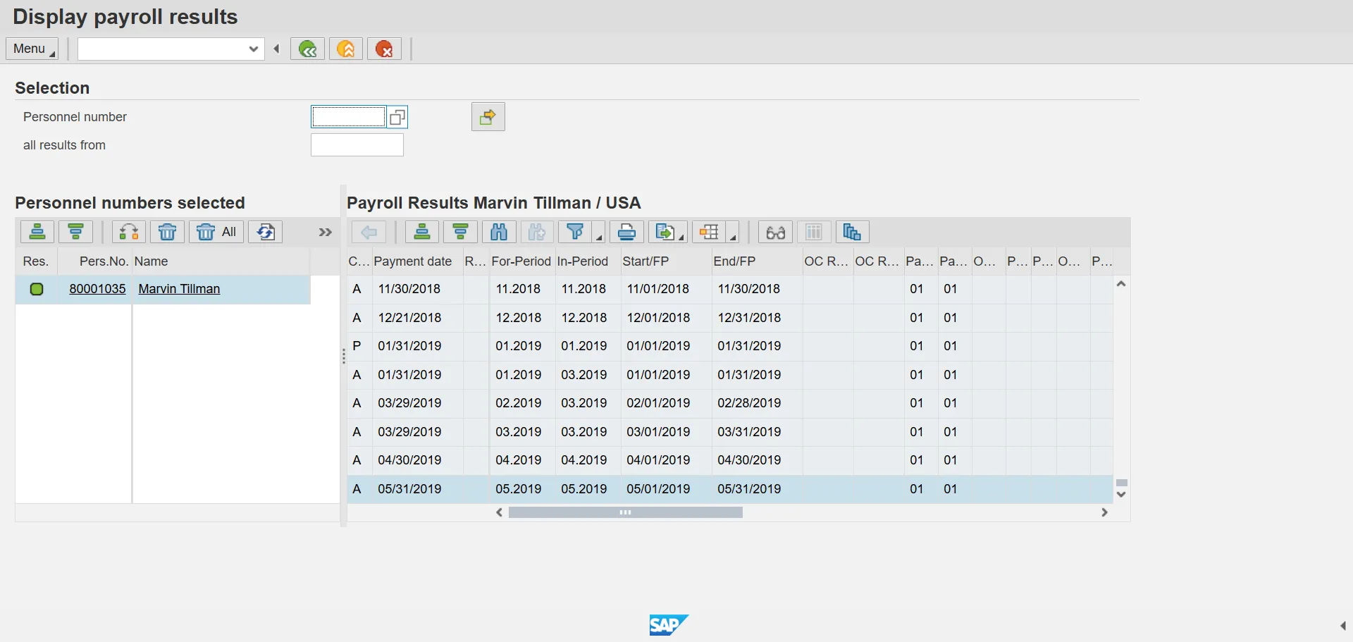 Note: The Results table lists each wage type used in processing this payroll period for the employee.