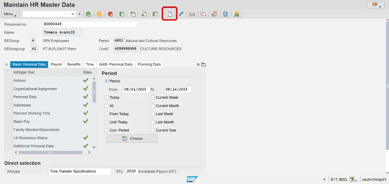 Step 2. Enter the personnel number of the employee in the Personnel No. field.