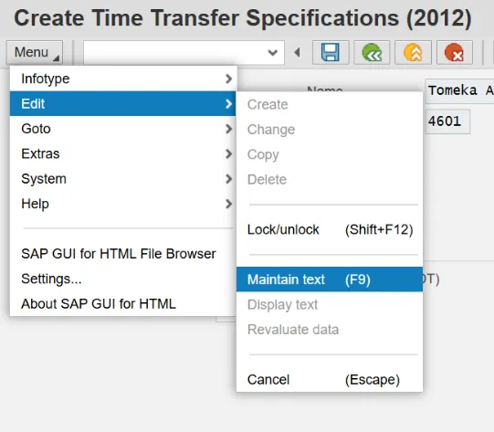 Step 4. Enter 2012 (Time Transfer Specifications) in the Infotype field.