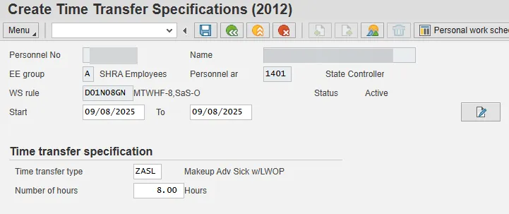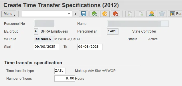 There are two subtypes for Infotype 2012 to allow the Leave Administrator to recover Advanced Vacation or Sick Leave liabilities at year end or when an employee separates:  ZAVL – Make up Adv Vacation w/LWOP and ZASL – Make up Adv Sick w/LWOP.