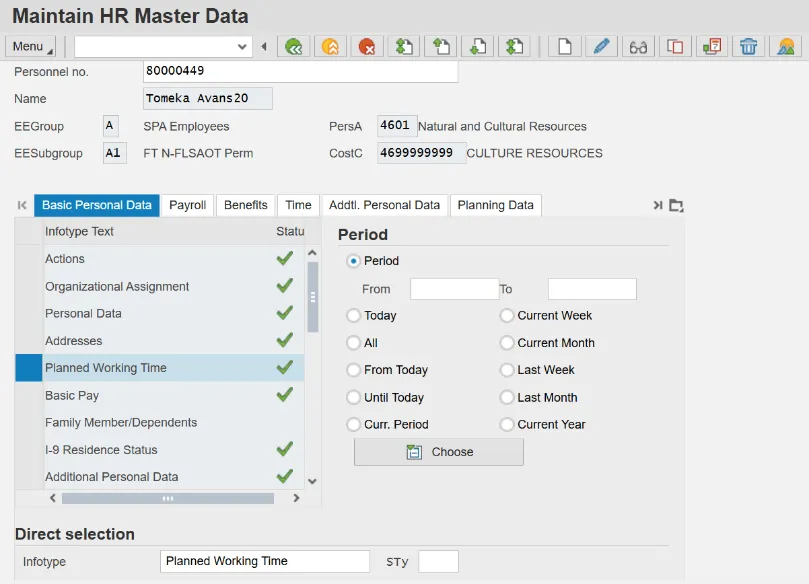 Step 1. In PA30, go to Infotype 0007 (Planned Working Times) and click the Copy button.