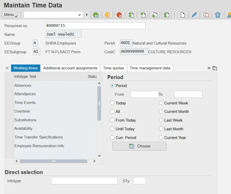 Step 2. Enter the recipient employee’s personnel number in Personnel no. field and click Enter on your keyboard. Example: 80000715.