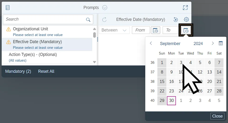 Step 1.    Select the Effective Date prompt.