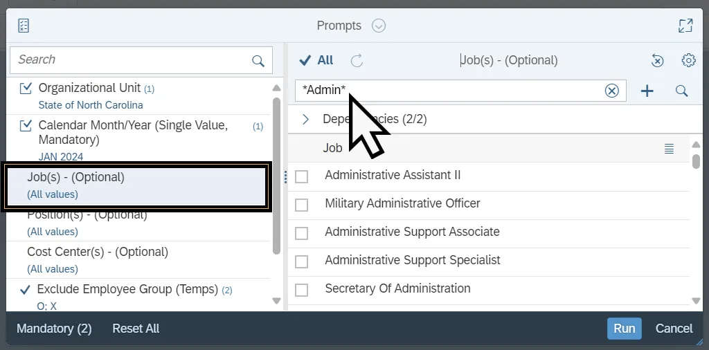 Step 1.    Select the Job Family(s) prompt.