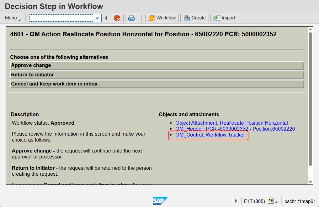 The Workflow Tracker can be accessed from your SAP Business Workplace Inbox and Outbox as well as on the Decision Step screen.