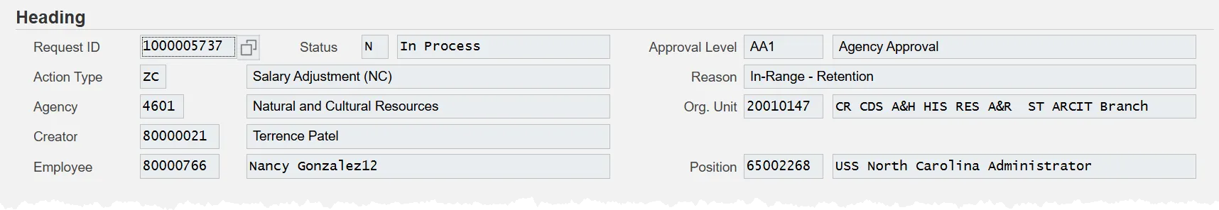 - Agency – The personnel area and name of the agency originating the request.
