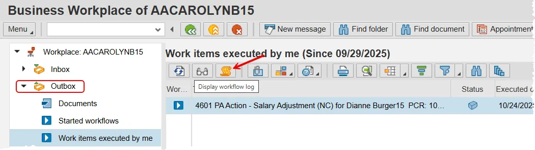 The Workflow Log can be accessed in your SAP Business Workplace Inbox or Outbox. First, select the Workflow item you are researching and then click the Workflow Log button. It contains some very valuable information, so you may remember that it looks like a treasure map!