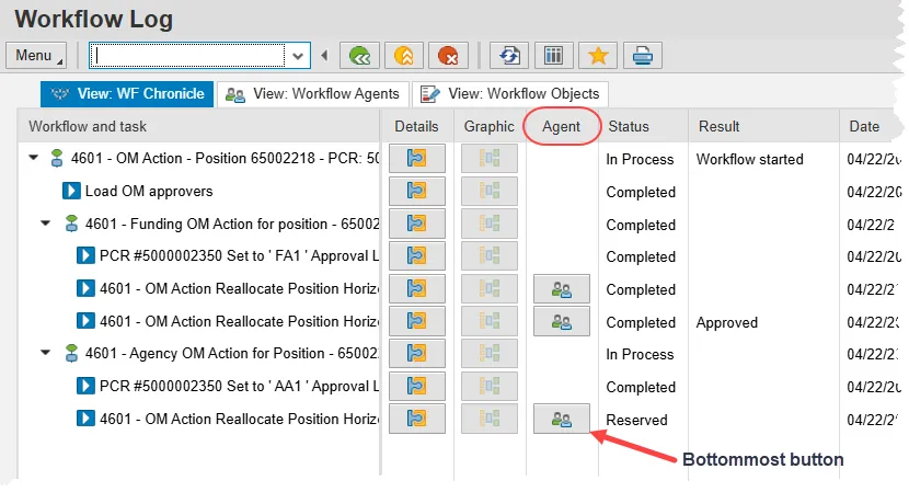 The Workflow Log is a busy screen with a few tabs, several columns and quite a few buttons. But we are only concerned with clicking on one button.