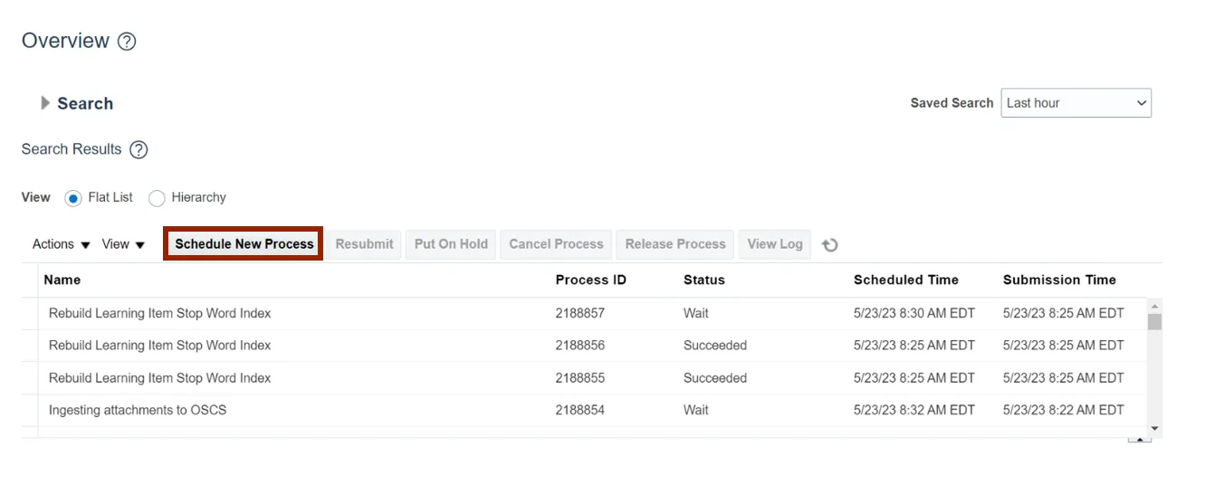 Step 3.    Click the Schedule New Process button.