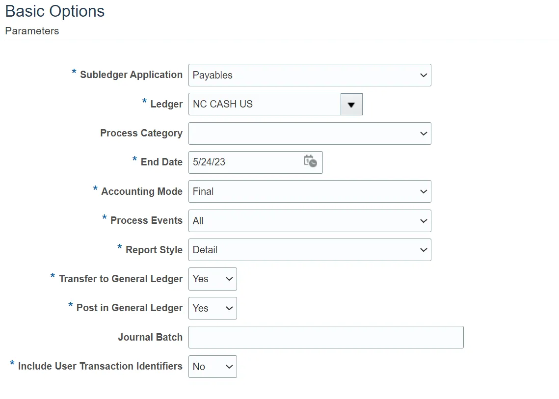 • *Subledger Application: Payables