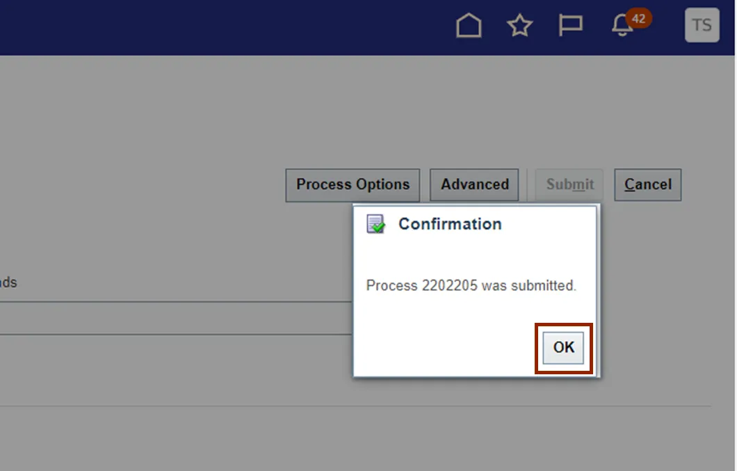 Step 5. The Confirmation pop-up appears. On the Confirmation pop-up, click the OK button.
