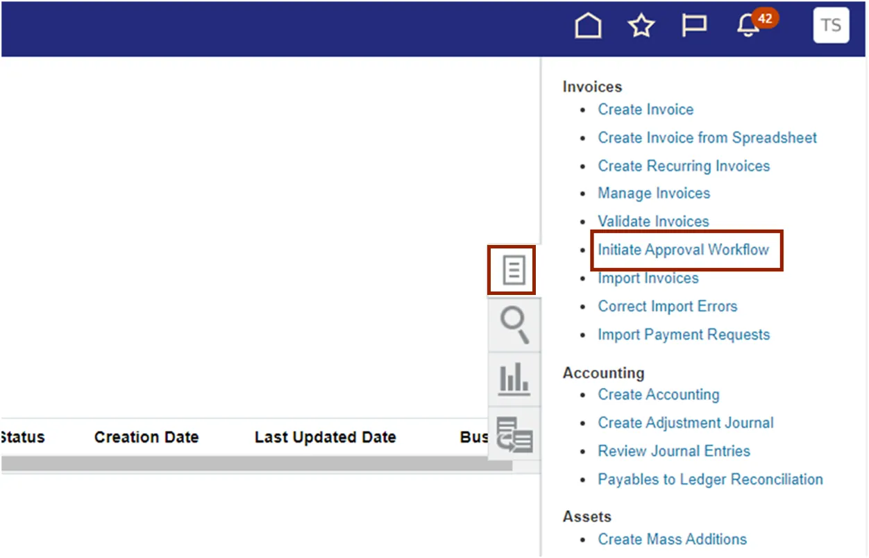 Step 2. Click the Tasks icon. On the Tasks pane, under Invoices, click Initiate Approval Workflow.
