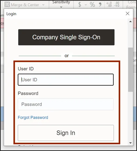 Step 6.    The NCFS Login pop-up appears. Enter your credentials and click the Sign In button.