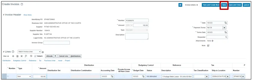 Step 11. On the Create Invoice page, click the Save button.