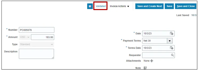 Step 13. Validate the Invoice. The status will be Validated.