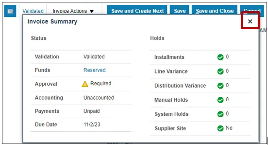 Step 16. Click the Cross icon to close the Invoice Summary pop-up.