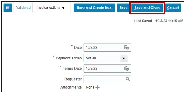 Step 17. Click the Save and Close button. This directs you back to the Invoice dashboard page.