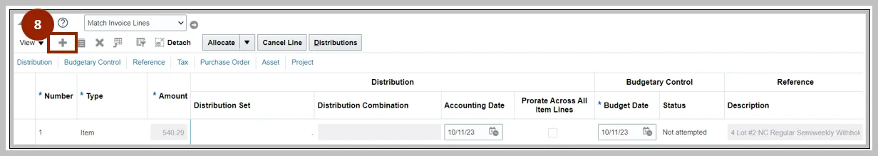 Step 11. Enter details in the new line. This distribution in this line should be the new distribution you want to use for the PO and should be equal to the previous negative line.