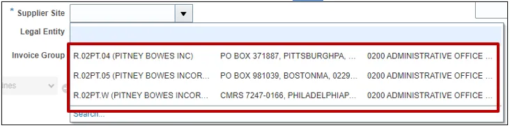 Step 6. Choose the correct Supplier Site from the drop down. In example we choose R.02PT.04.