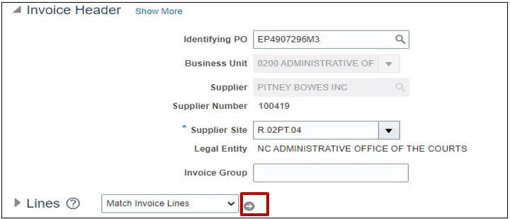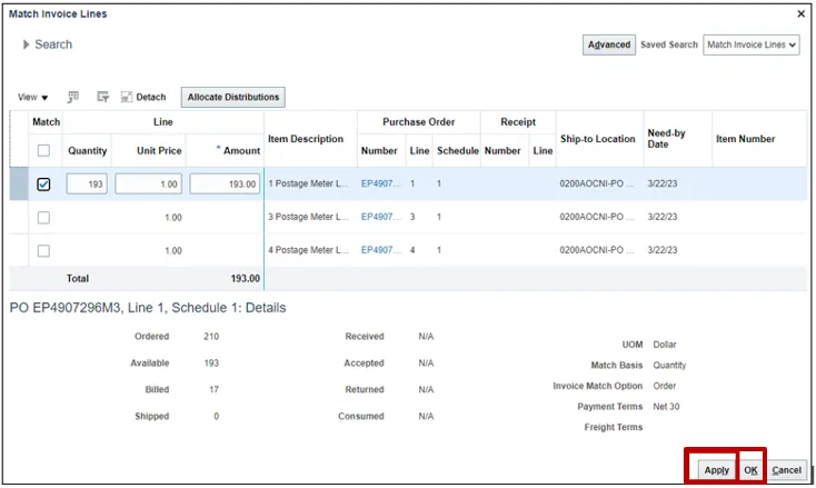 Step 8. Click the Go icon to match the invoice line.