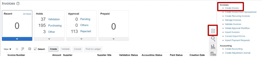Step 2.    On the Home page, click the Payables tab and then click the Invoices app.