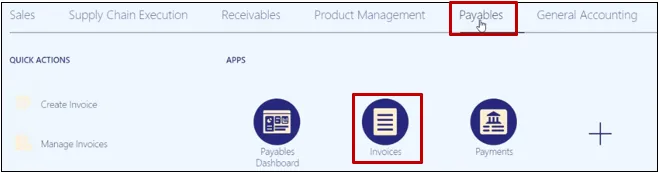 Step 2.    On the Home page, click the Payables tab and then click the Invoices app.