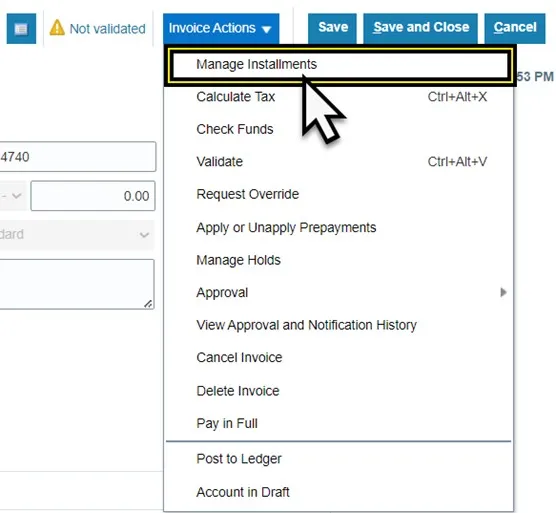 Step 8.    Use steps 15 through 19 in scenario 1 to Validate and Approve the zero-dollar invoice.