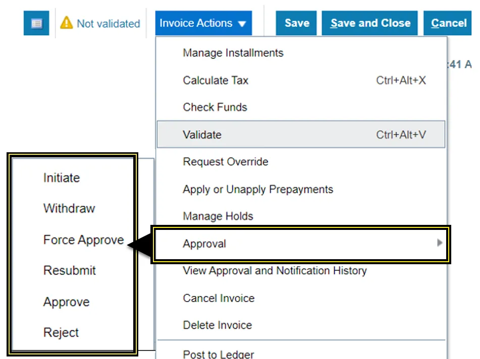 17. Select Approval and approve the invoice, based on your agency policy for the approval process.