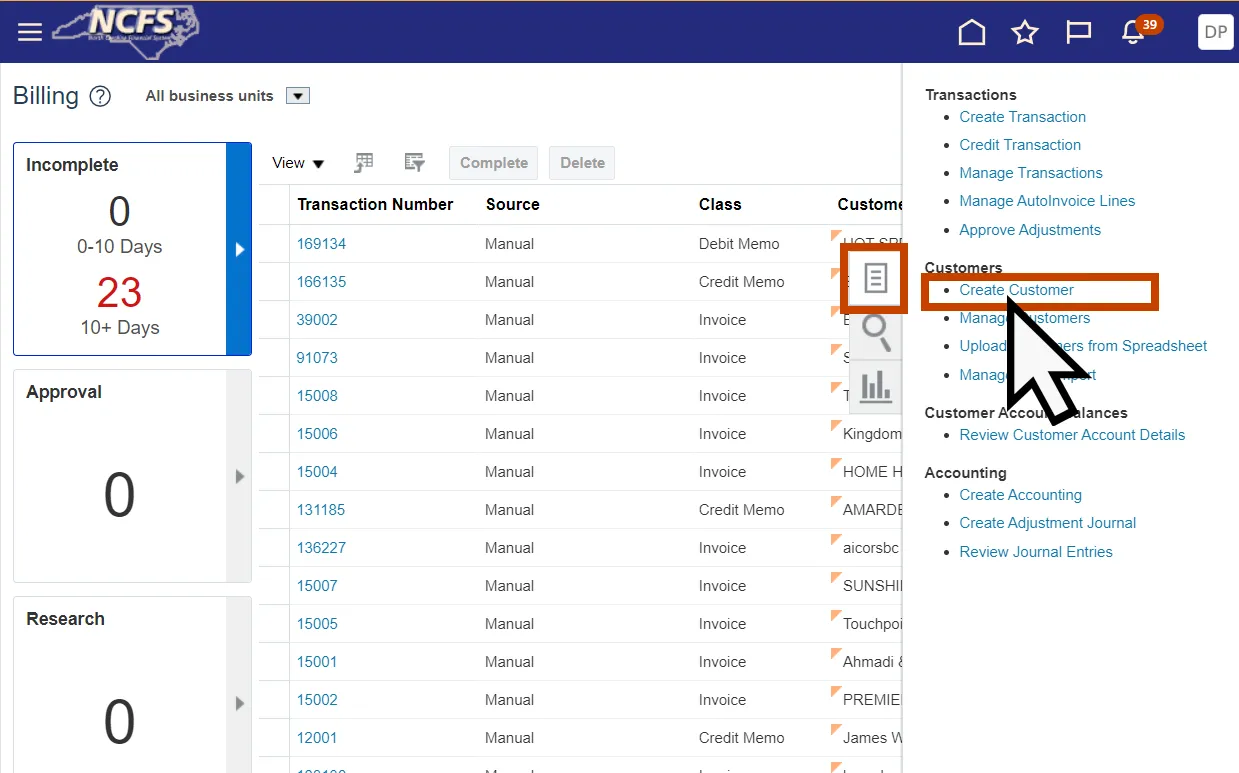 This QRG covers the steps to create a customer in NCFS. This process also allows you to create the customer billing information.