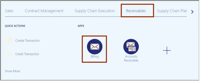 Step 2. On the Home page, click the Receivables tab and click the Billing app.