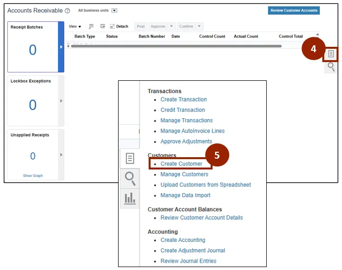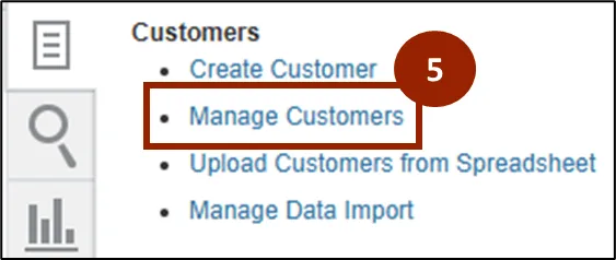 Step 5.    Click the Manage Customers hyperlink from the Task list.