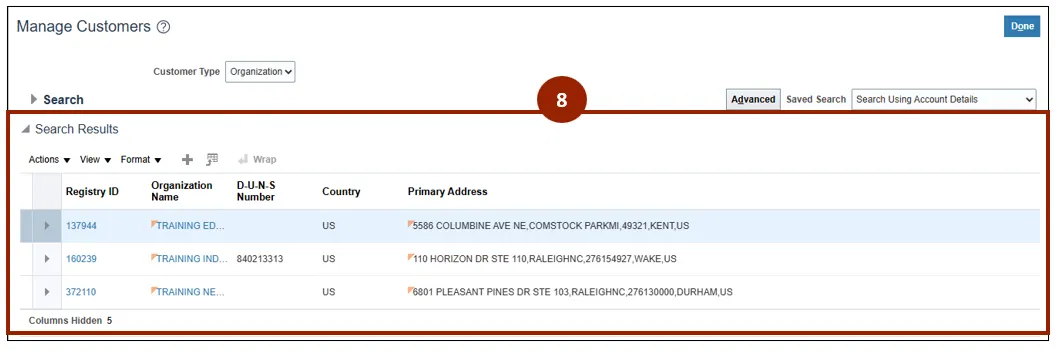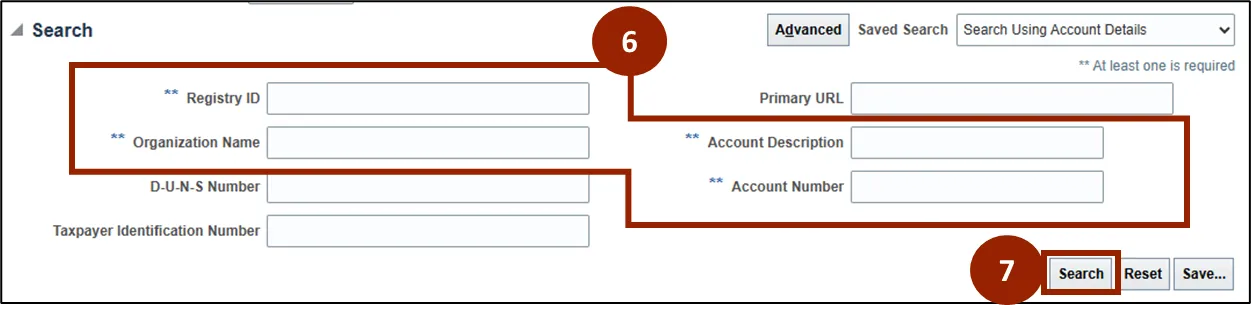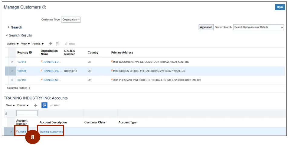Step 8.    Select the relevant customer record. In the Accounts section, click on either the Account Number or the Account Description to proceed.