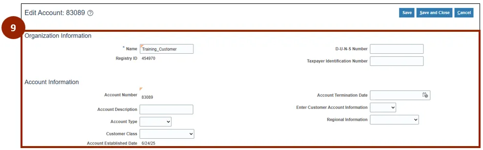 • Step 6c. Account Type: Specify the classification or category of the customer account.