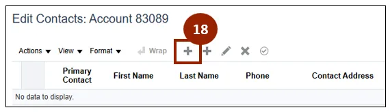 Step 18.    Within the Contacts section, click the + sign to create a new contact and associate it with the customer account.