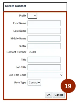 Step 19.    Fill in the Create Contact form with the necessary details and click OK.