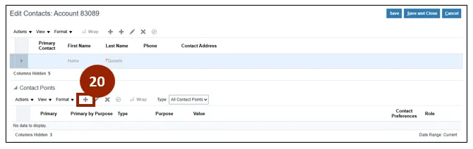 Step 20.    Click the + icon under Contact Points to create a contact point or define a method of correspondence for the selected contact.