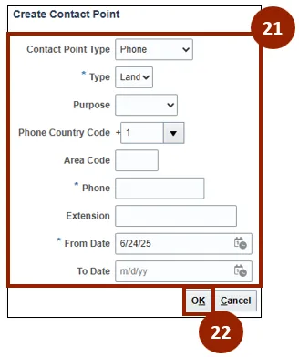 Step 21.    Fill in the Create Contact Point form with the necessary details: