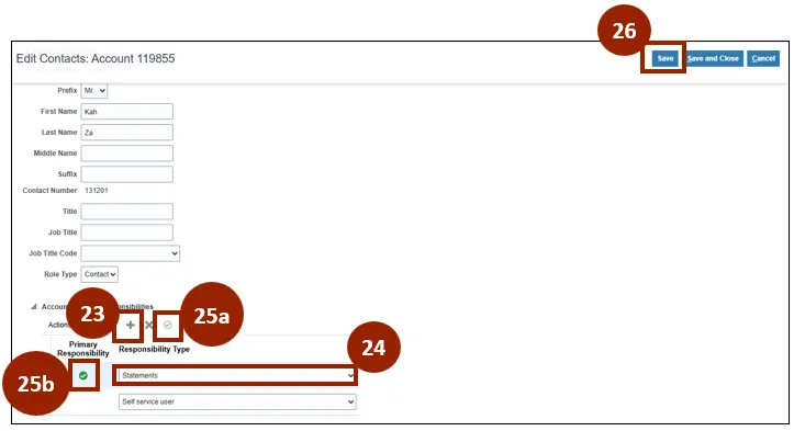 Step 25.    You can assign multiple responsibilities to a contact, and set one responsibility as the primary responsibility: