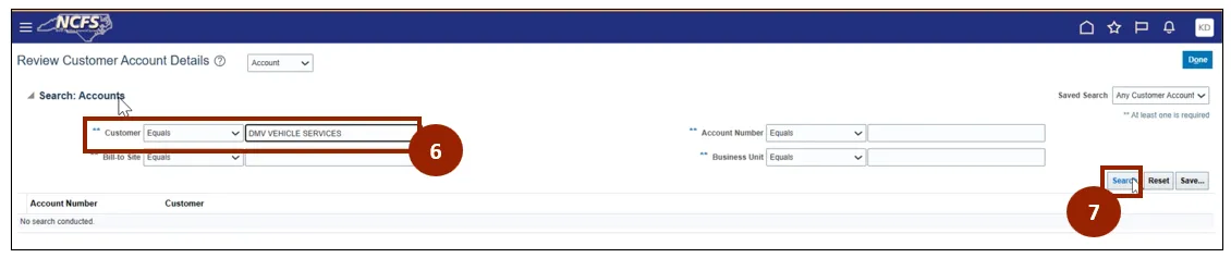 Note: If the customer does not exist in NCFS, move on to the Create a Customer Record section.