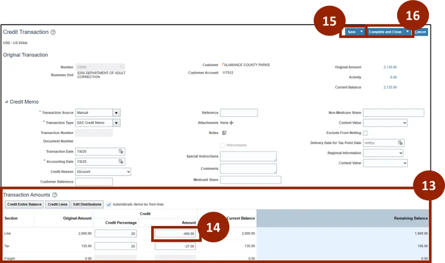 Step 13. Navigate to the Transaction Amounts section, locate the relevant line item for which the credit is being issued.